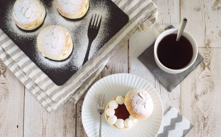 セムラはシナモンロールにも使う定番のお菓子パンの生地で作ることできます。焼き上がったパンの中にたっぷりのマジパン又はいちごジャムを入れ、その上に生クリーム絞れば簡単に家で楽しめます!ちなみに、マジパン派とジャム派の人の間にどちらが正しいか、よく議論しますが、お好みに合わせて中身を変更しても◎。どちらも入れる欲張りの人もいるらしいです!