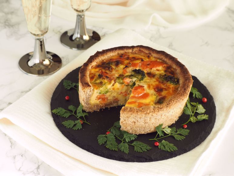 今回はスモークサーモンとブロッコリーの濃厚なキッシュをご紹介します。ライ麦入りの生地で食感も風味も良くて、スパークリングワインと共にカウントダウンにぴったり!