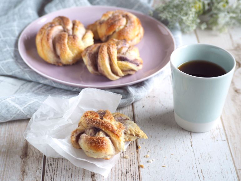 Some time ago I got a bag of bilberry powder, and was thinking what to do with it. Then I came up with these Finnish braided knots (they are a type of pulla) filled with blueberry custard. First making and I ended up with nice light purple stripes, but taste was more of cardamon than blueberry…