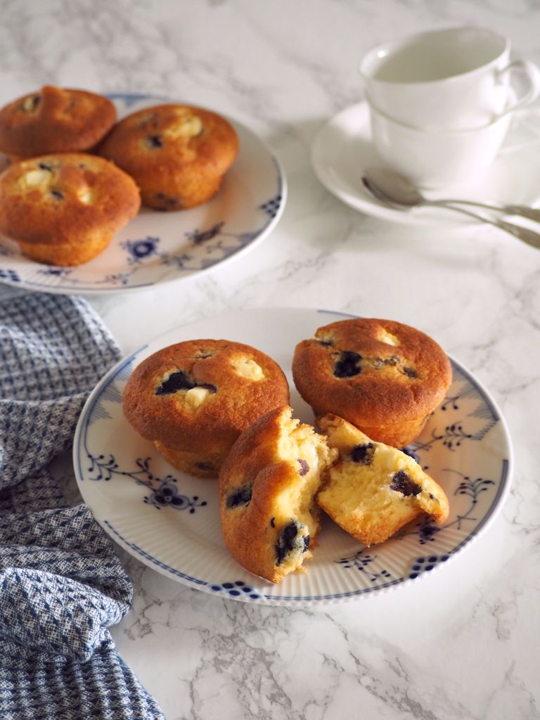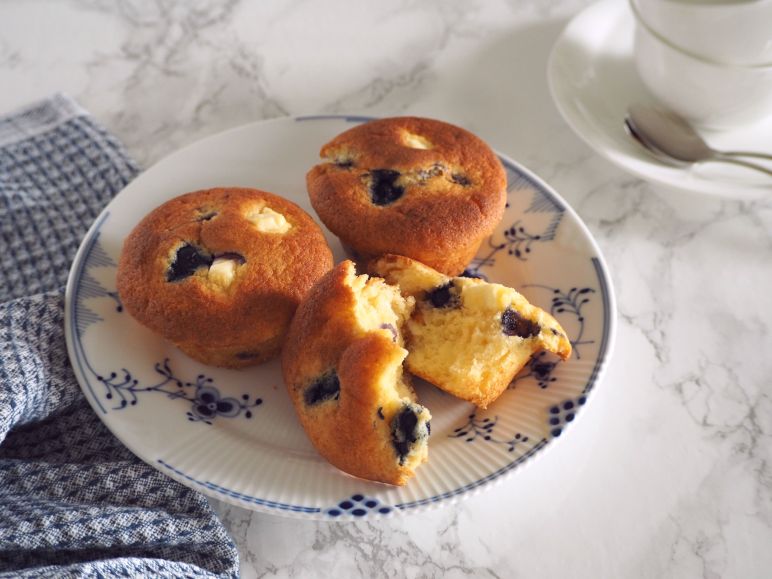 柔らかめの生地なので、ふわふわに仕上がりますし、ブルーベリーの甘酸っぱさとクリームチーズの濃厚な味わいはやはり相性バツグンです♪