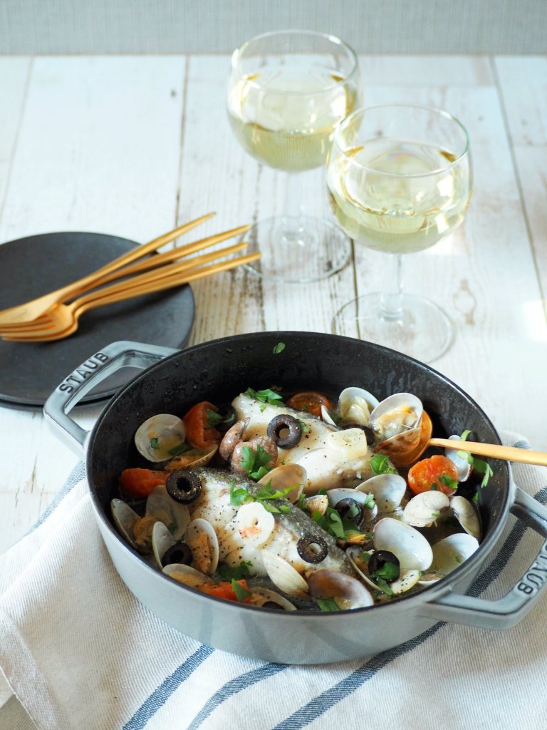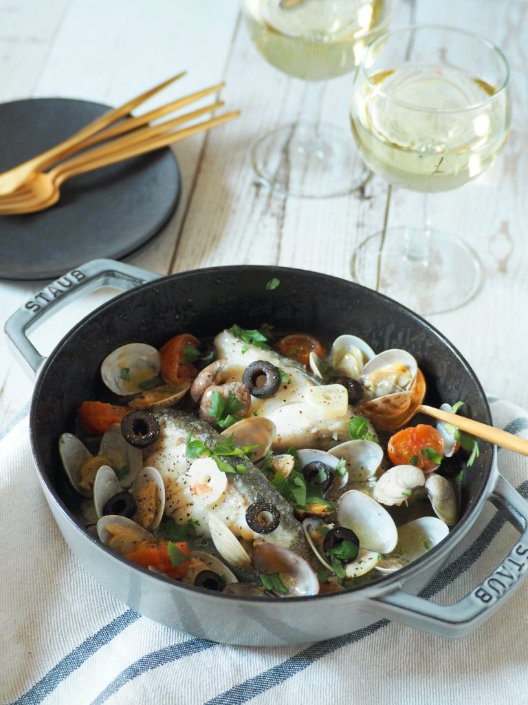 お好みの魚で作っても結構ですが、今回は今が旬で値段もリーズナブルな鱈で作りました。パサパサしやすいタラですが、オリーブオイルで煮込みますのでふっくらと仕上がります。また、アサリから良い出汁が出て、旨味たっぷりの一品になります!
