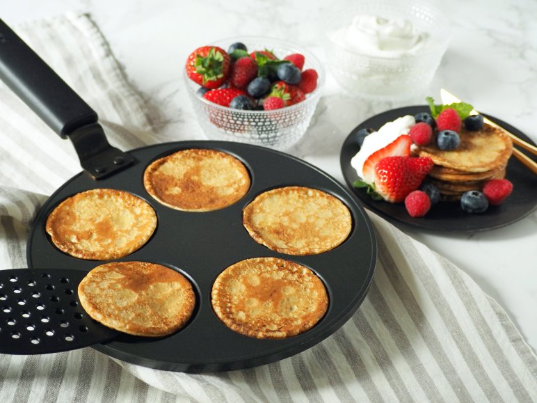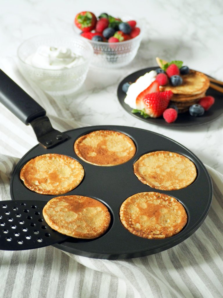 そんなところですが今週末はずっと雨になりそうですよね・・・家の中でも楽しめて、気分が上がる料理がいいなともいまして、久しぶりにクレープを焼きました!北欧で一般的にミニクレープ専用のフライパンですとひっくり返しも簡単で、失敗することがほとんどありません。