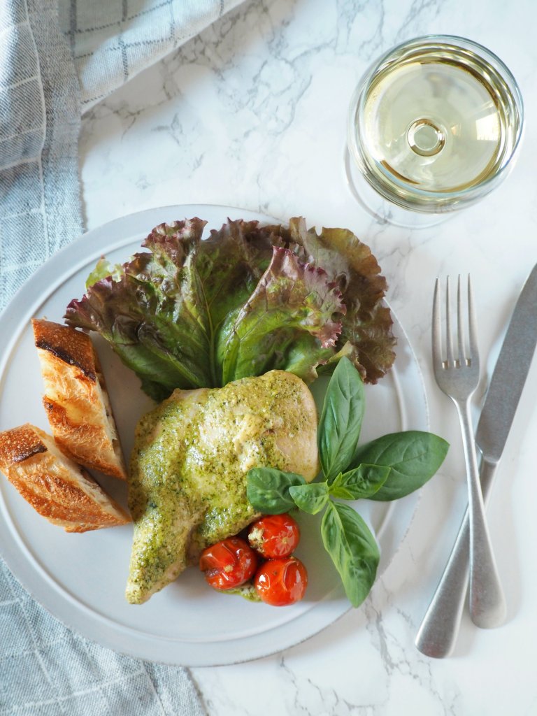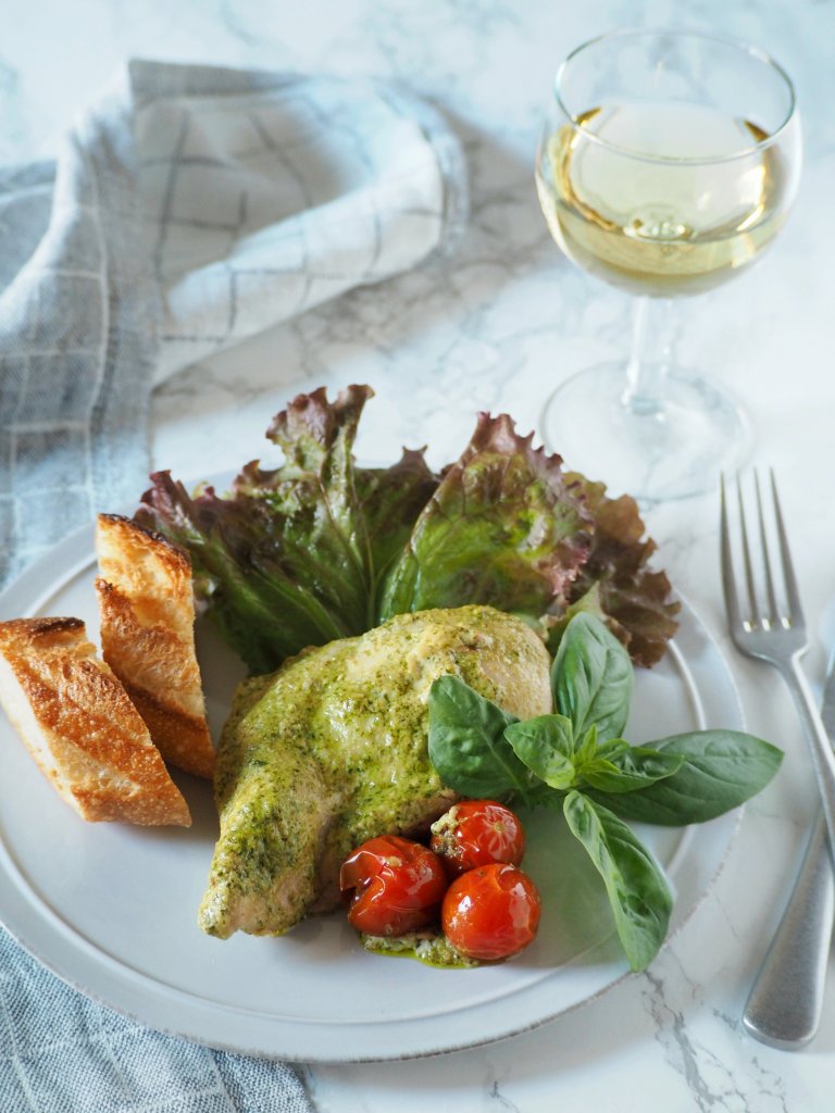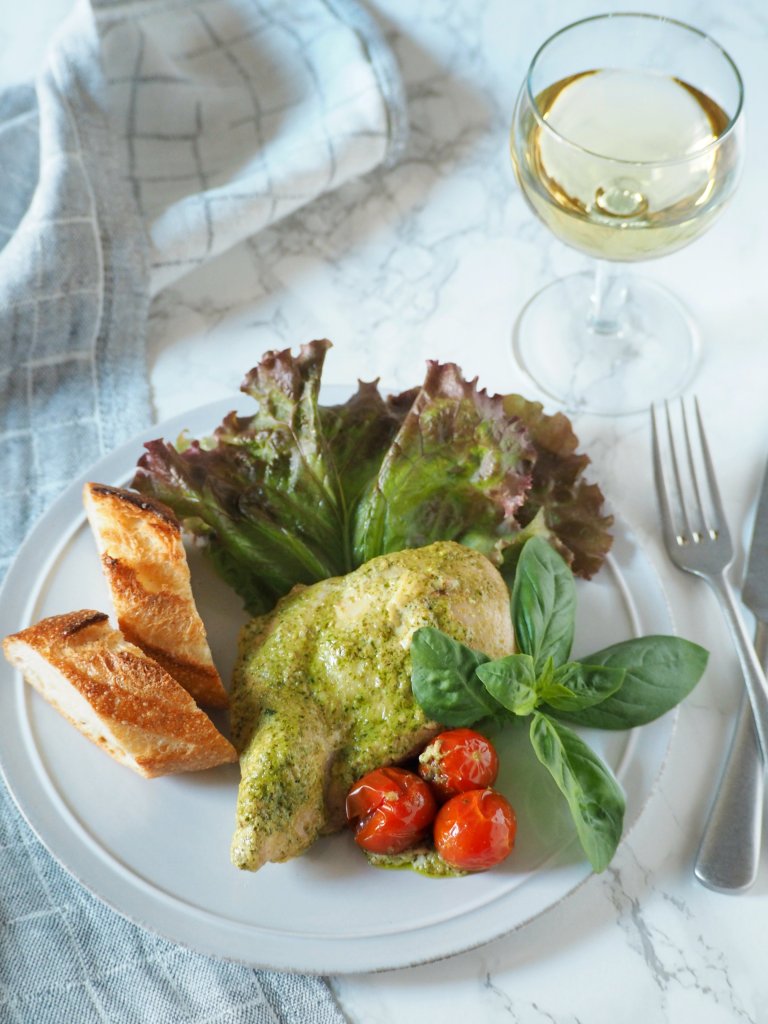 The trick is to use marinades and go for oven instead of a frying pan, which easily makes chicken to lose all its juiciness. This time I introduce a quick & easy oven dish using pesto genovese, or the green basil sauce from Northern Italy.