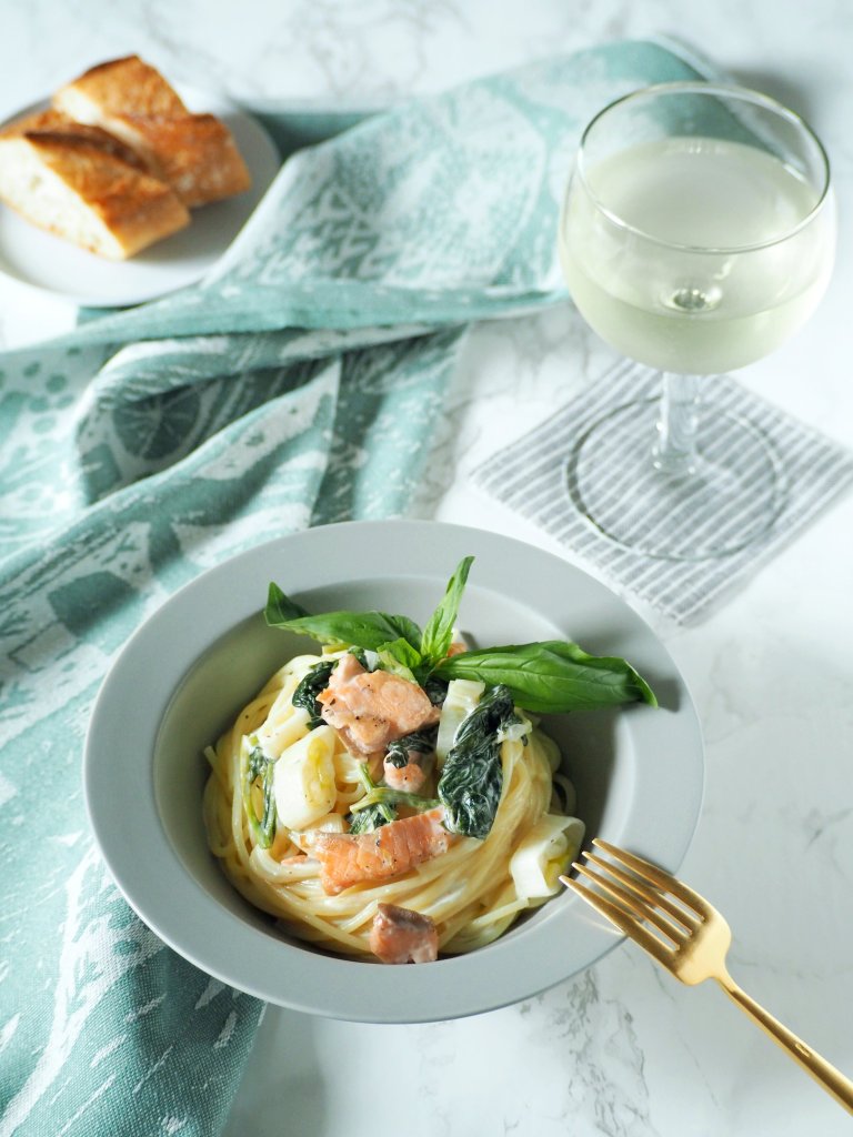 そこで今回はこの季節にぴったりな濃厚なクリームパスタをご紹介します♪ スモークサーモン&ほうれん草という定番の具材ですが、どこか北欧も感じますよね。実際にフィンランドでもサーモンと青色の野菜を合わせてパスタを作ることがあります。