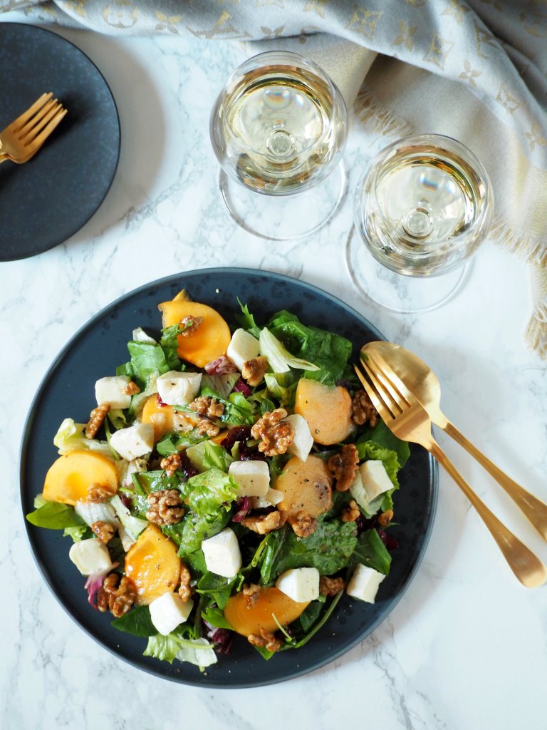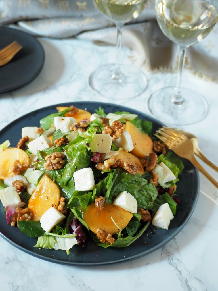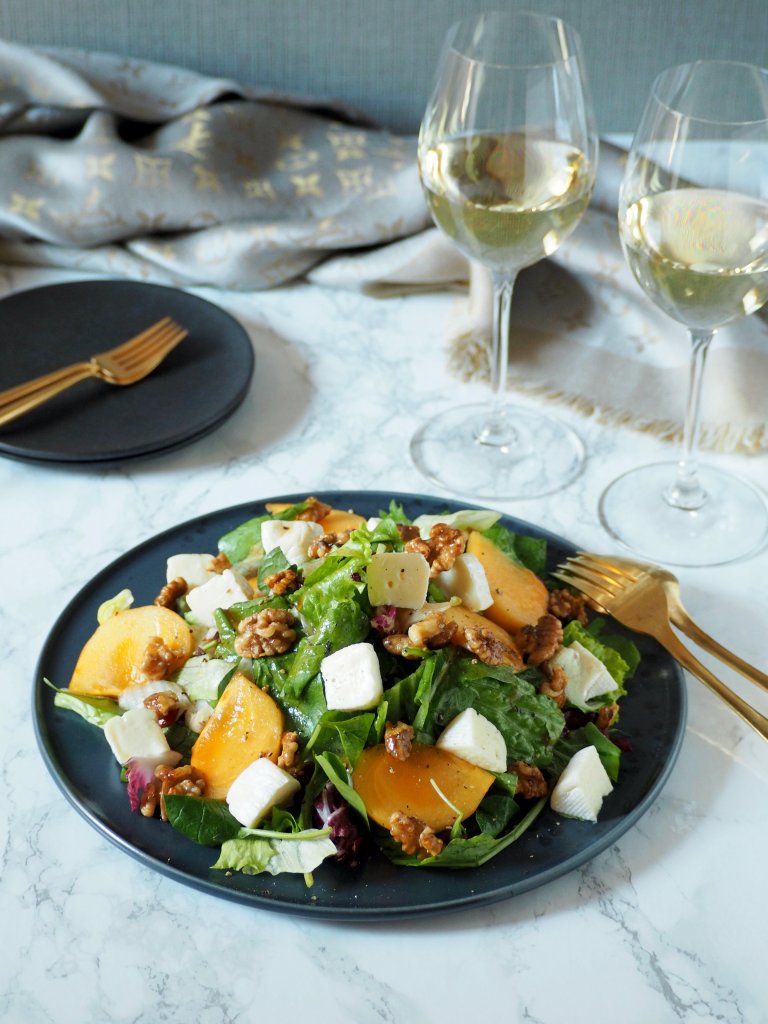 Speaking about colours, there’s another colourful thing that are special to autumn – persimmons. Sweet and gooey, with their bright orange colour, persimmons are no doubt one of the best parts of the season. They are great to eat as is, and can also be made into desserts such as this tofu cheese cake, but this time I decided to use them in salad.