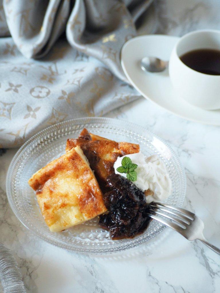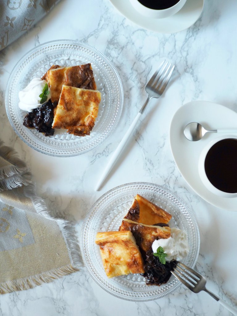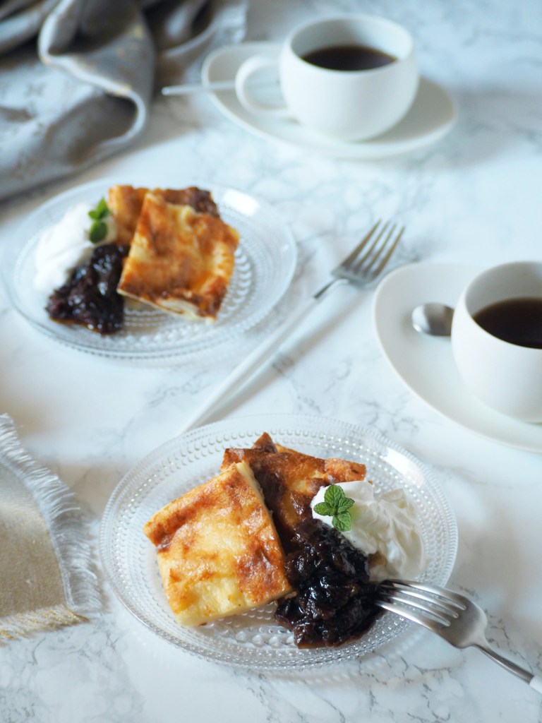 However, it does get pretty cold in Tokyo too, meaning that warm dishes are highly appreciated. Not only the main dish, but warm desserts would be nice too… In Finland it’s common to bake a pancake for a dessert during the winter months (oh well, we do eat it in the summer too…) – you heard right, I said ‘bake’. To reduce the fuss and dishes afterwards, Finnish pancake is baked at once in the oven!