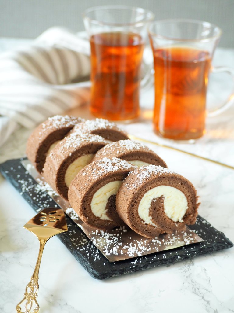 Cocoa Roll with Vanilla Cream Filling (makes 2 rolls)