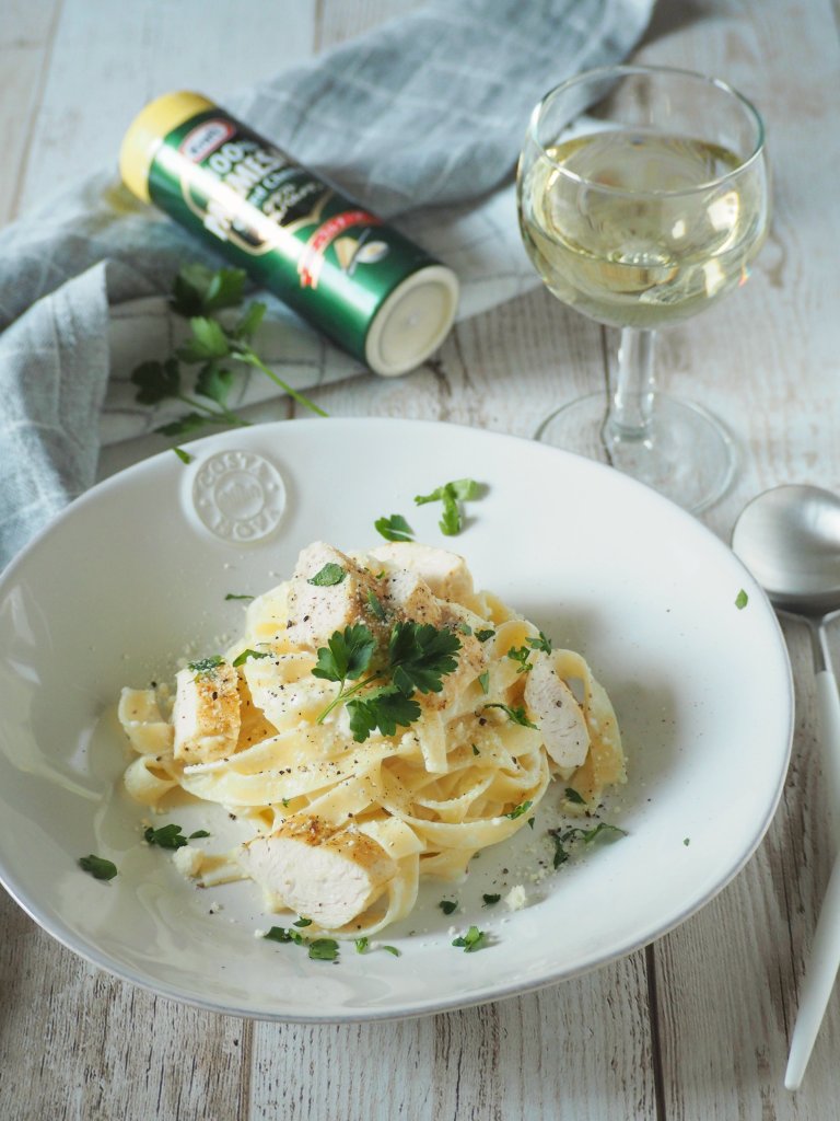 Pasta Alfredo with Curry-Flavoured Chicken Filets (makes 2 portions)