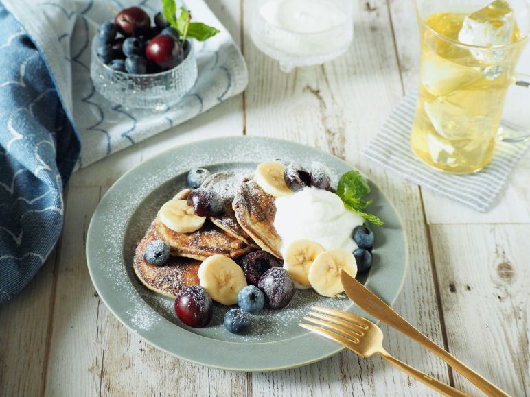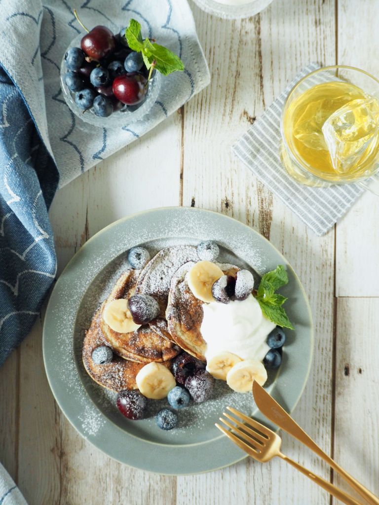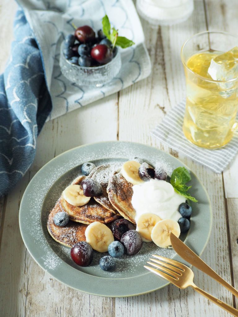 材料3つのバナナパンケーキって聞いたことありますか?基本材料はバナナ、卵とベーキングパウダーのみのグルテンフリーでヘルシーなパンケーキです。バナナから充分な甘みとねっとり感が出るので普通のパンケーキと違って小麦粉と砂糖は一切要りません。