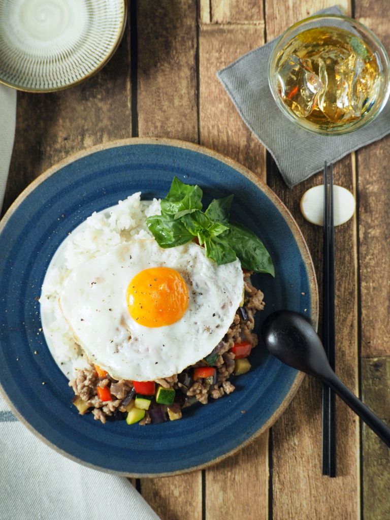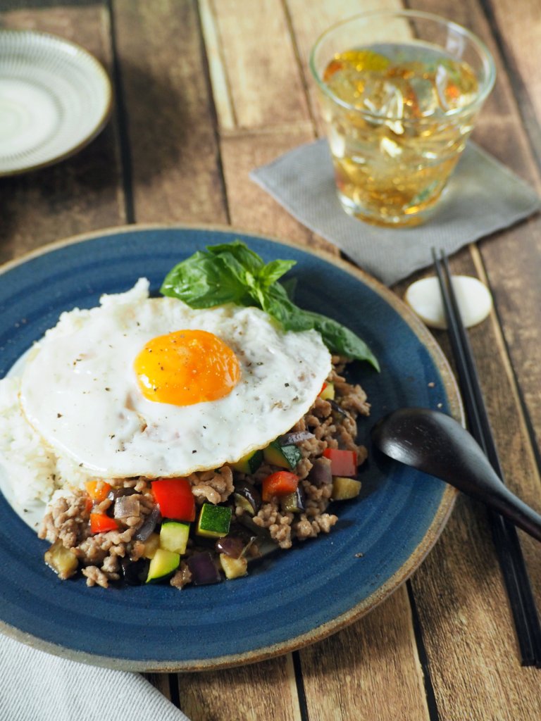 というわけで、今回はフィンランド料理に全く関係なく(申し訳ございません)、我が家の簡単ガパオライスをご紹介します!本格的なタイ料理よりは、夏野菜たっぷりを入れてカラフルにして、少ない調味料でもぱぱっと美味しくなるようなものです。