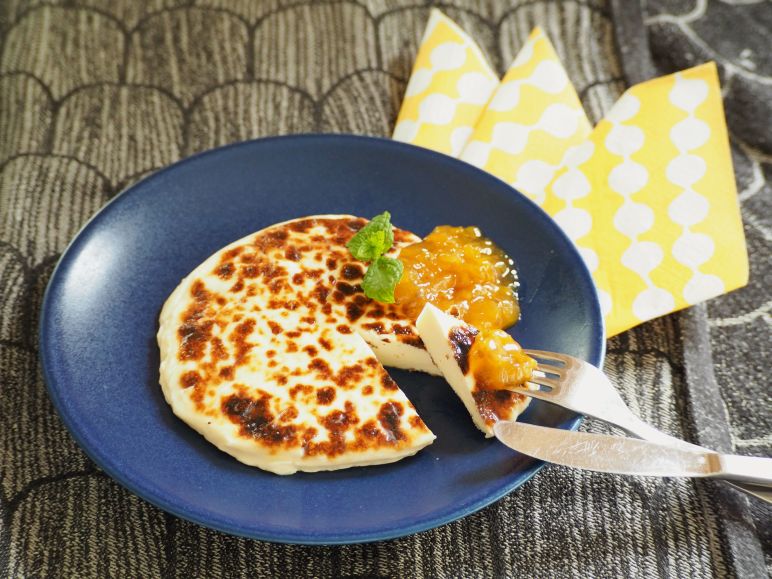 さて、先週のリンゴンベリー&キャラメルソースの続きに、今週もフィンランドの伝統デザートを紹介します。「Leipäjuusto(レイパユースト)」は聞いたことありますか?噛むと独特な音がするフィンランドの伝統的な焼きチーズのことです。味はとても優しくて、大人も子供が大好きなものです。淡いパステルイェローに焼くことによってできた黒いスポットがついている区別しやすい見た目のチーズです。