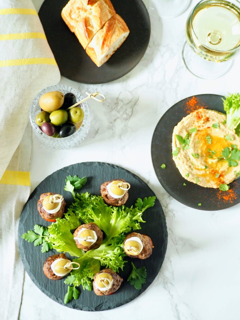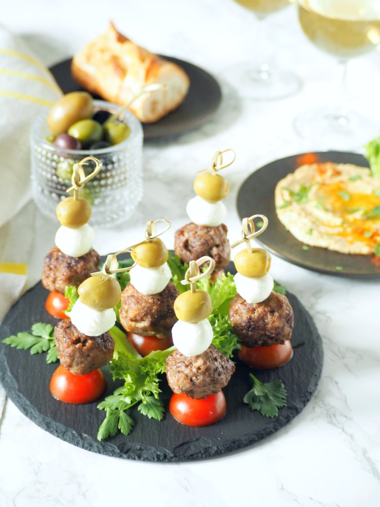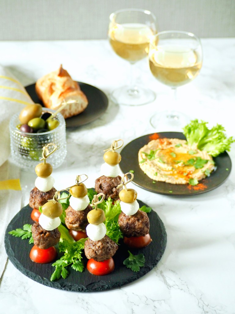 しかしそれだけでおなかがいっぱいにならない、、と思うのはフィンランド人なので、ひと口サイズにならず、ふた口が必要なビッグサイズのものにしました(笑)。北欧の人気料理のミートボールにミニトマトやオリーブなど合わせてカラフルにしました。