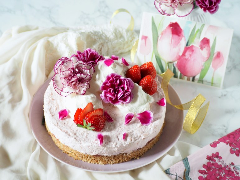 In Finland father & kids wake up earlier than usual to make breakfast for mom – and not the usual breakfast, but a bit fancier version that will be brought to her bed! Usually a cake is involved, so I decided to introduce an easy-to-make strawberry mousse cake this time.