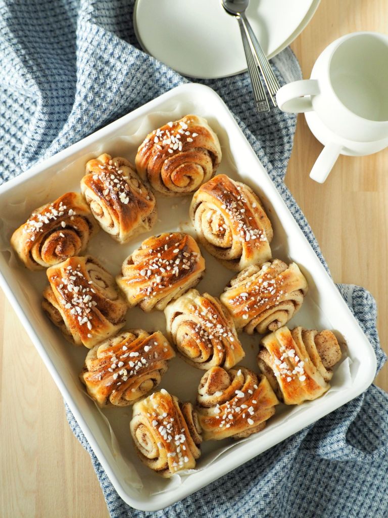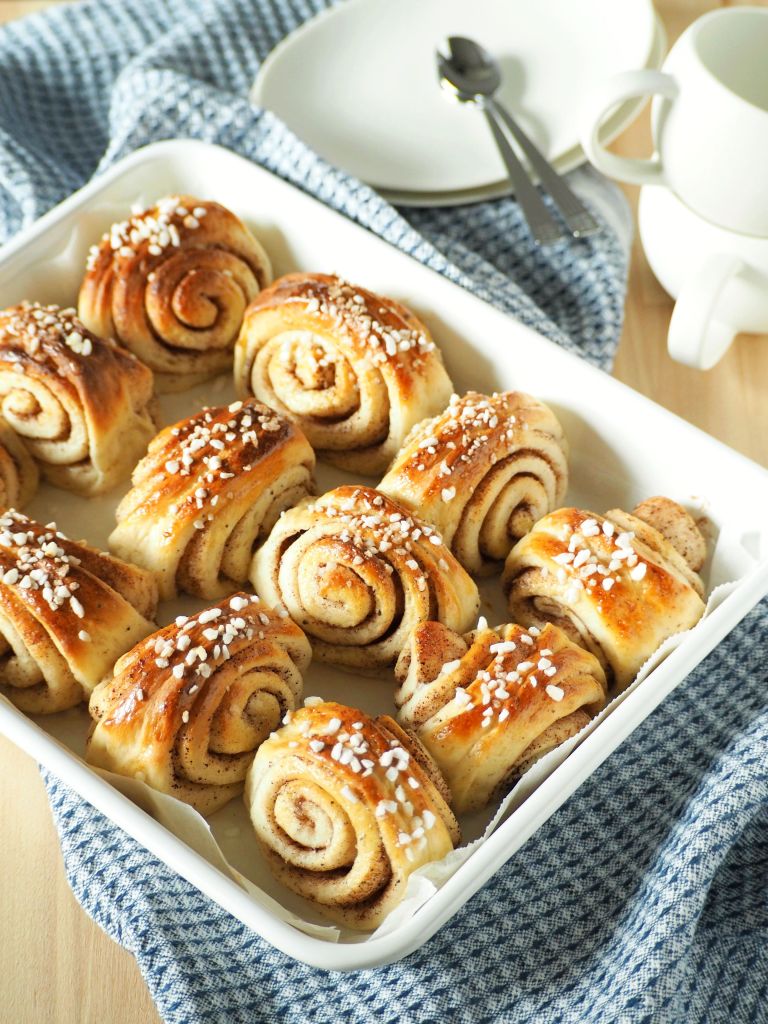 そこでこの「仲良しシナモンロール」を作っちゃいました!一つのパットに詰め詰めに入れて、膨らんでくっついちゃても大丈夫という、ちぎりパンのようなコンセプトですが、見た目はちゃんとフィンランドのシナモンロールです。ちなみに生地を発酵させ過ぎちゃって焼くときに形が崩れてしまいそうなときにも役に立つ焼き方だと思いますので、ぜひご参考にしてください・・・!