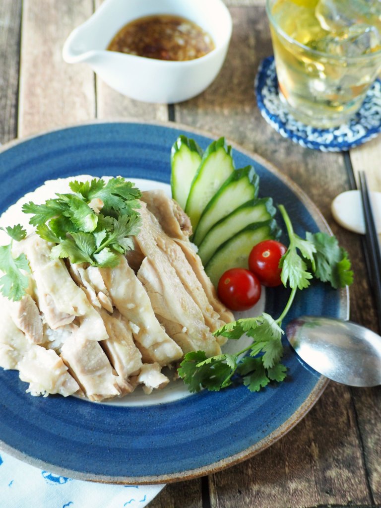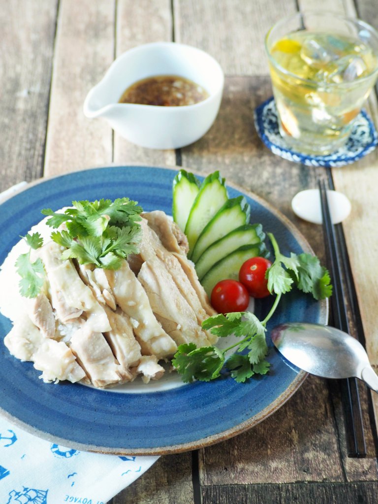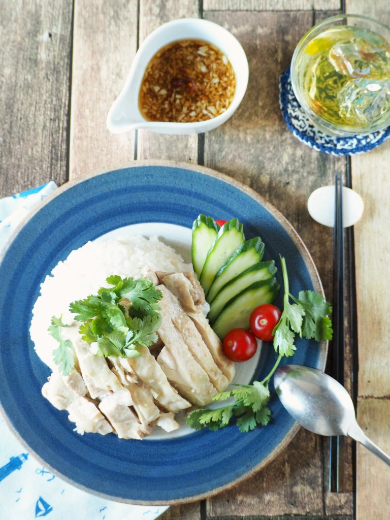 シンガポール料理として有名な海南チキンライスですが、タイ料理のカオマンガイとほぼ同じ料理です。鶏肉と一緒に炊いたご飯が旨味たっぷりで、鶏肉もホロホロ柔らかくて、薬味たっぷりのソースをかけてパクチーの山盛りを乗せれば暑い日にぴったりな一皿です。
