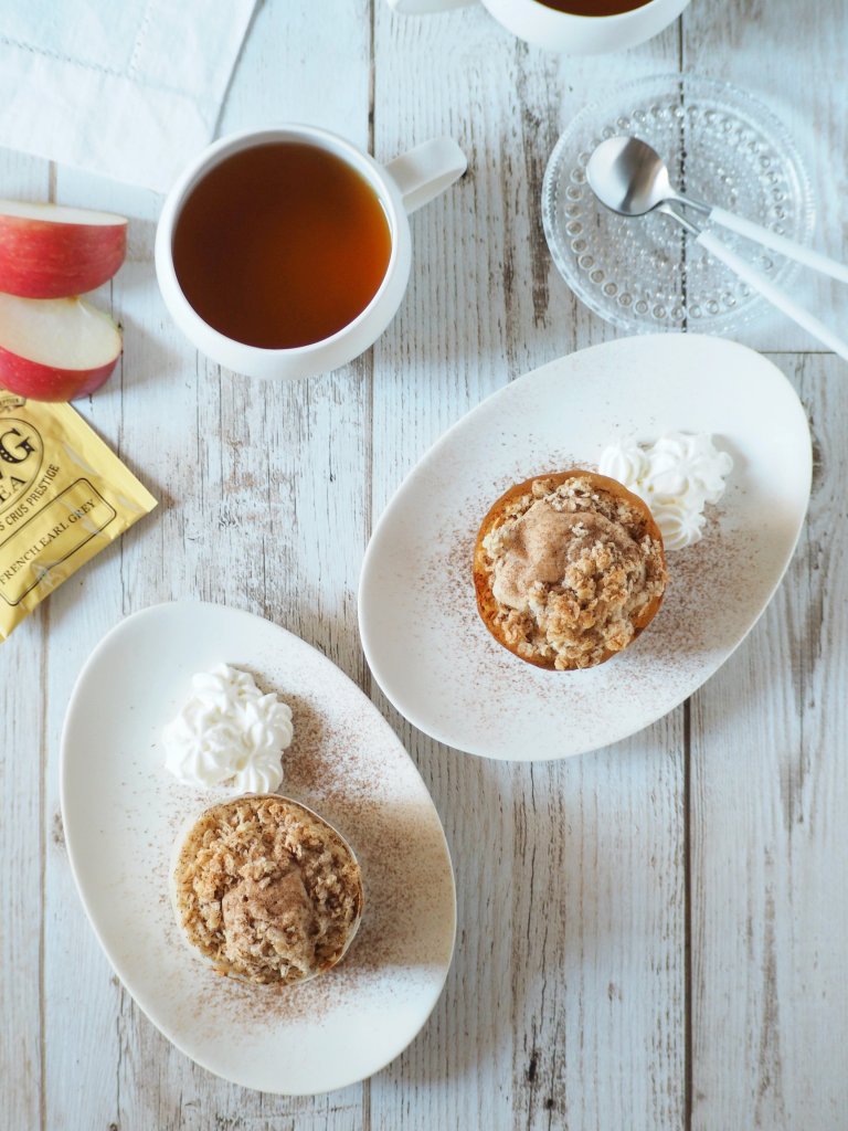 日本ではブルーベリーマフィンは定番ですが、今回はりんごを入れて、クリスピーなオーツのトッピングを乗せてみたら、紅茶やコーヒーは2杯目だけでなく、3杯目も飲みたくなっちゃう美味しさになりました。手元にりんごがありましたら、試してみてはいかがでしょうか。