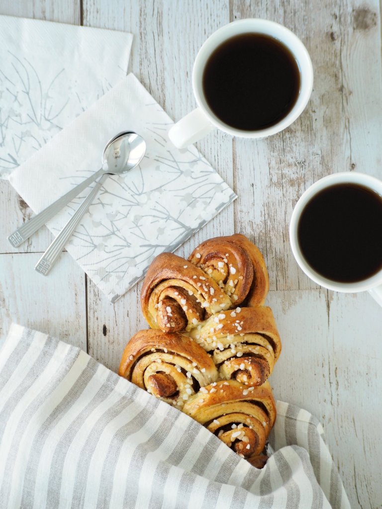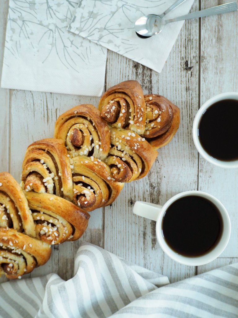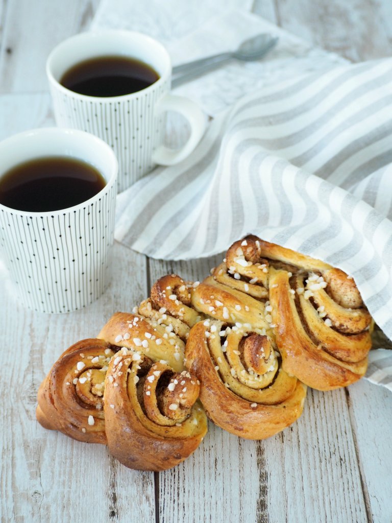 Thus I decided to do the #1 warming up exercise we Finnish people do on cold days – baking some cinnamon rolls! Anyone who has baked cinnamon rolls from scratch knows that you’ll get warm quickly by kneading the dough, and of course the best part is to enjoy the freshly baked cinnamon rolls with a piping hot cup of coffee or tea.