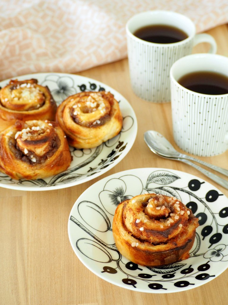 You can use store-bought jam, but making apple jam from scratch for these make a big difference in taste. Instead of traditionally shaped Finnish cinnamon rolls, I decided to bake these in paper cups because adding jam makes the dough very soft.